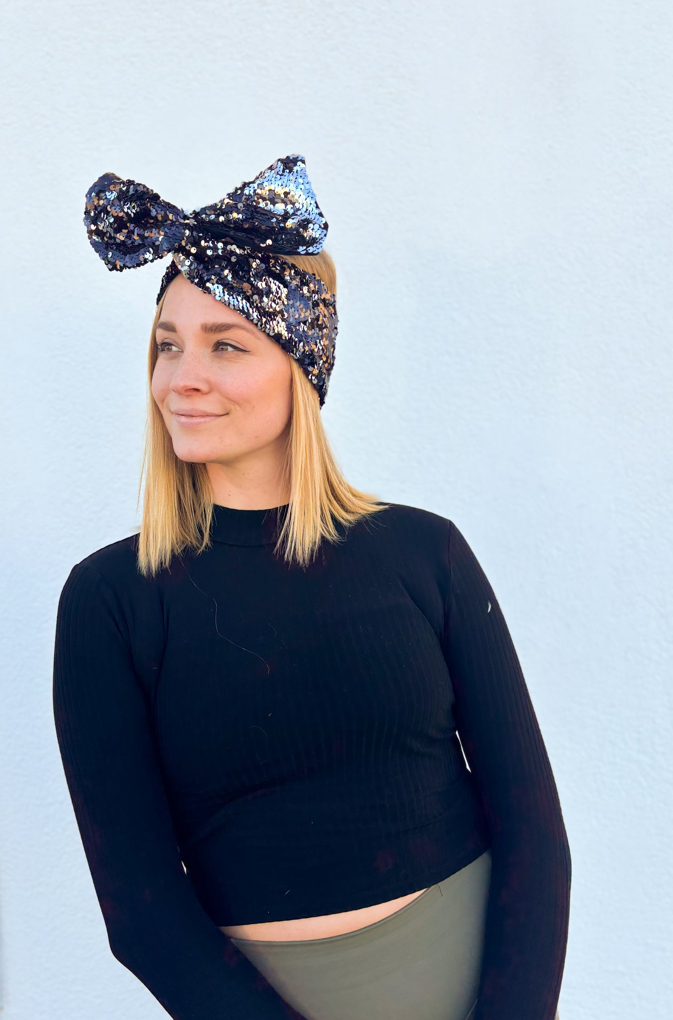 The accessory that makes any party or festival! This head wrap/turban/headband can be styled countless ways! It also has the fun reversible magic sequins and is a great fit for Mardi Gras, Coachella, Carnival, bachelorettes and even just a Sunday Funday!