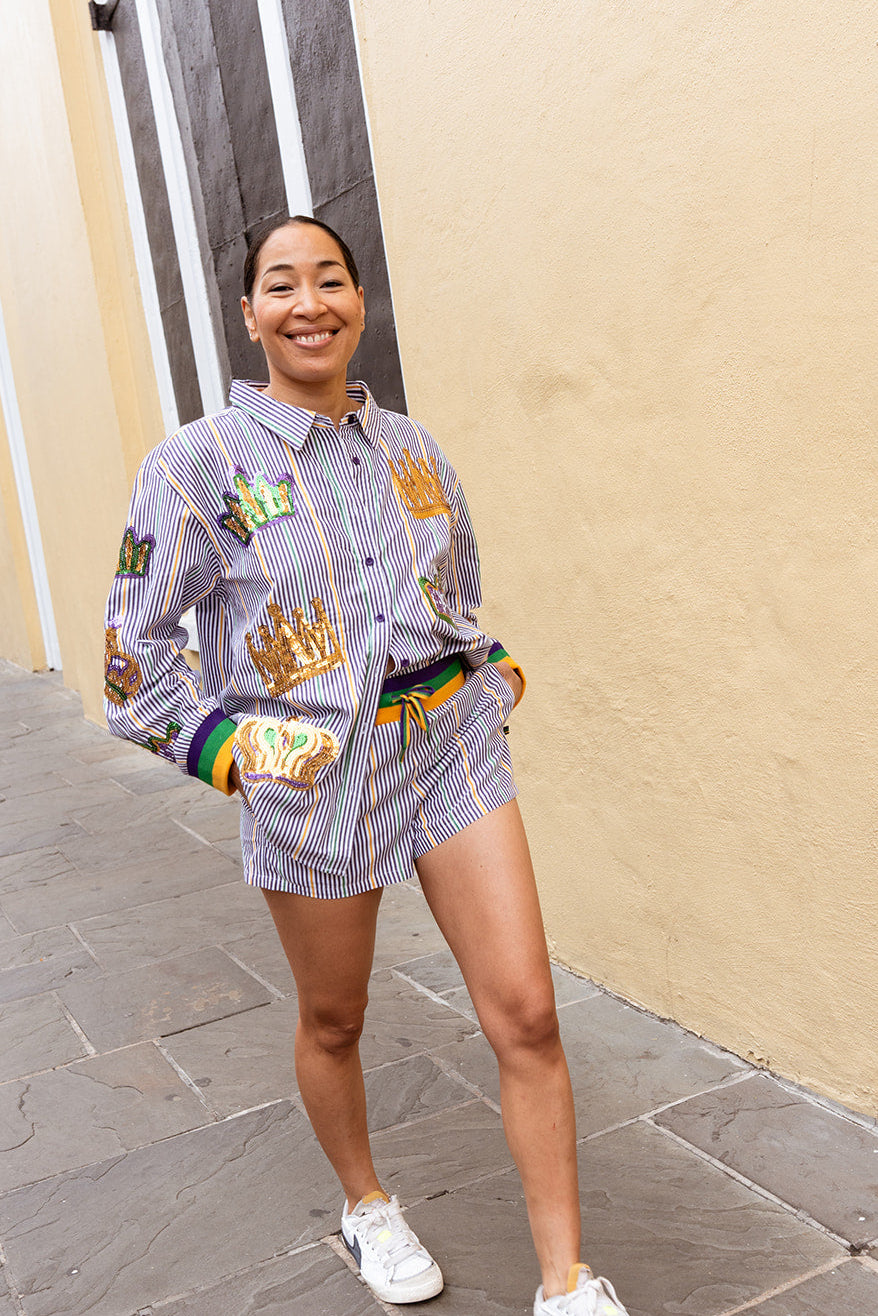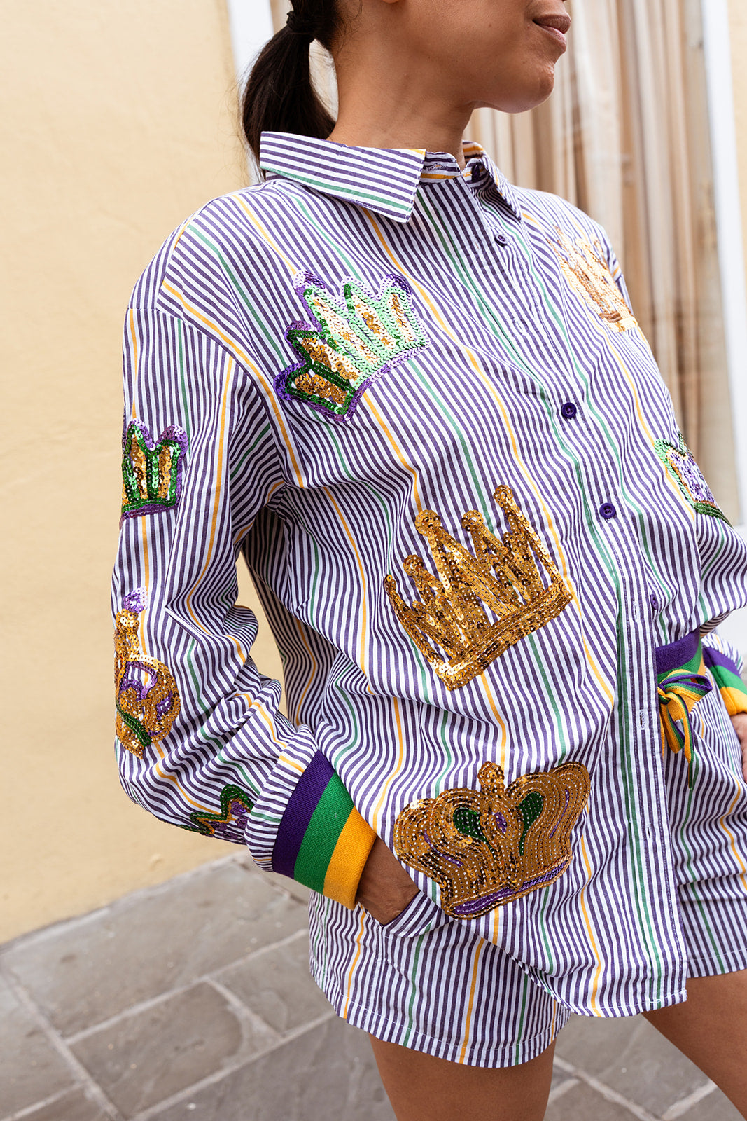 Designed to dress up or down, this Adult Pinstripe Sequin Button Up Shirt elevates a classic style with shimmering sequin pinstripes that catch the light with every move. Perfect for adding glamorous edge to evening looks or making a statement at special events, this button-up combines timeless tailoring with eye-catching sparkle.